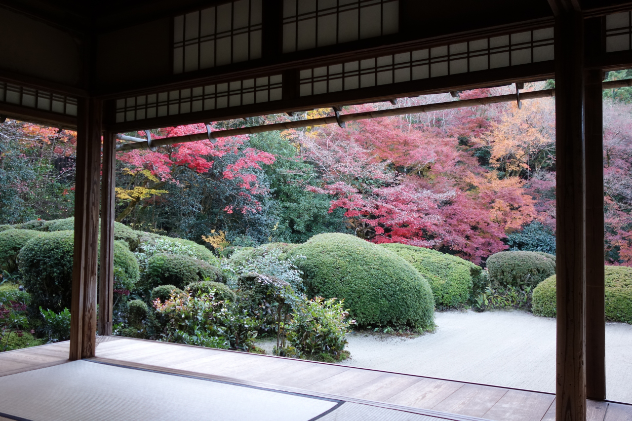 座敷から見ることの出来る美しい枯山水庭園や名前の由来となった狩野探幽が描いた36人の詩人の肖像を飾った「詩仙の間」を鑑賞することが出来ます。