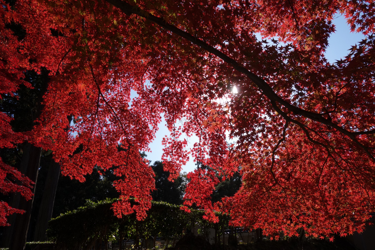 紅葉の時期は、本堂横一面や境内の所々が真っ赤に染まるほど、壮観な風景を見ることが出来る紅葉の名所です。