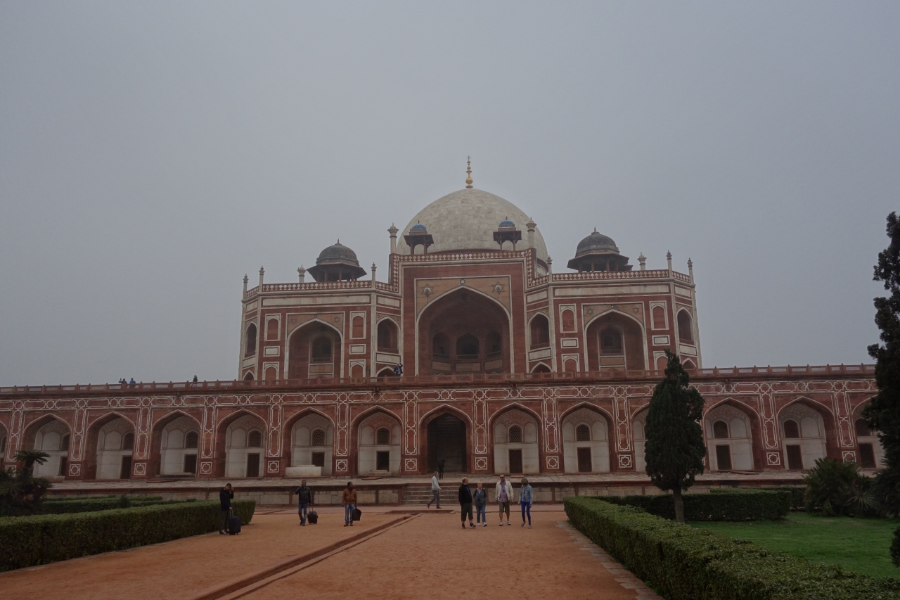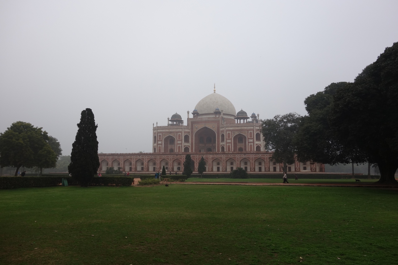 フマユーンのペルシャ出身の妃による発案で建てられた霊廟ということで、ムガールとペルシャ様式が融合した建築物と庭園になっています。総大理石造りではないので色合いは違いますが、タージマハルのモデルと云われるだけあって、形がよく似ています。