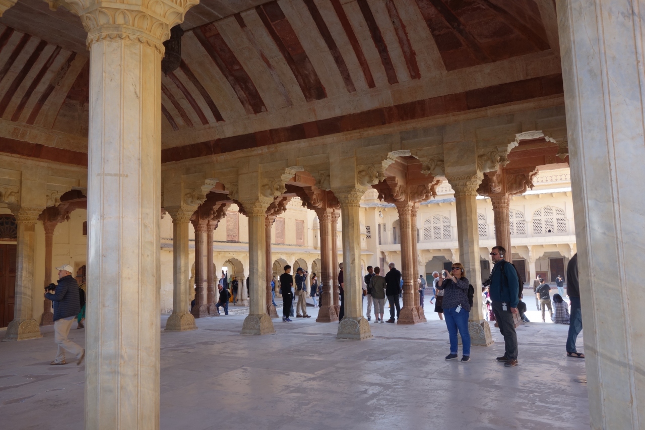 第三代皇帝アクバルによって、赤砂岩で重厚な要塞が建設されましたが、第五代皇帝シャー・ジャハーンにより、宮殿部分が白大理石で増設されています。色も造りも全く違うので、一目で誰が造った場所か分かります。