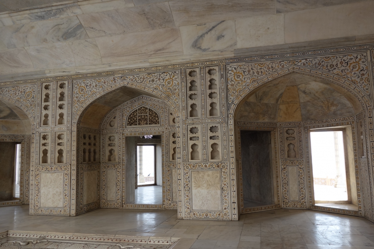 タージ・マハルを建造したシャー・ジャハーンは、息子による王位簒奪により、自分が造営したアグラ城内の一室に幽閉され、死ぬまでそこで過ごしました。タージ・マハルが見える部屋であったことが、せめてもの慰めだったのかもしれません。
