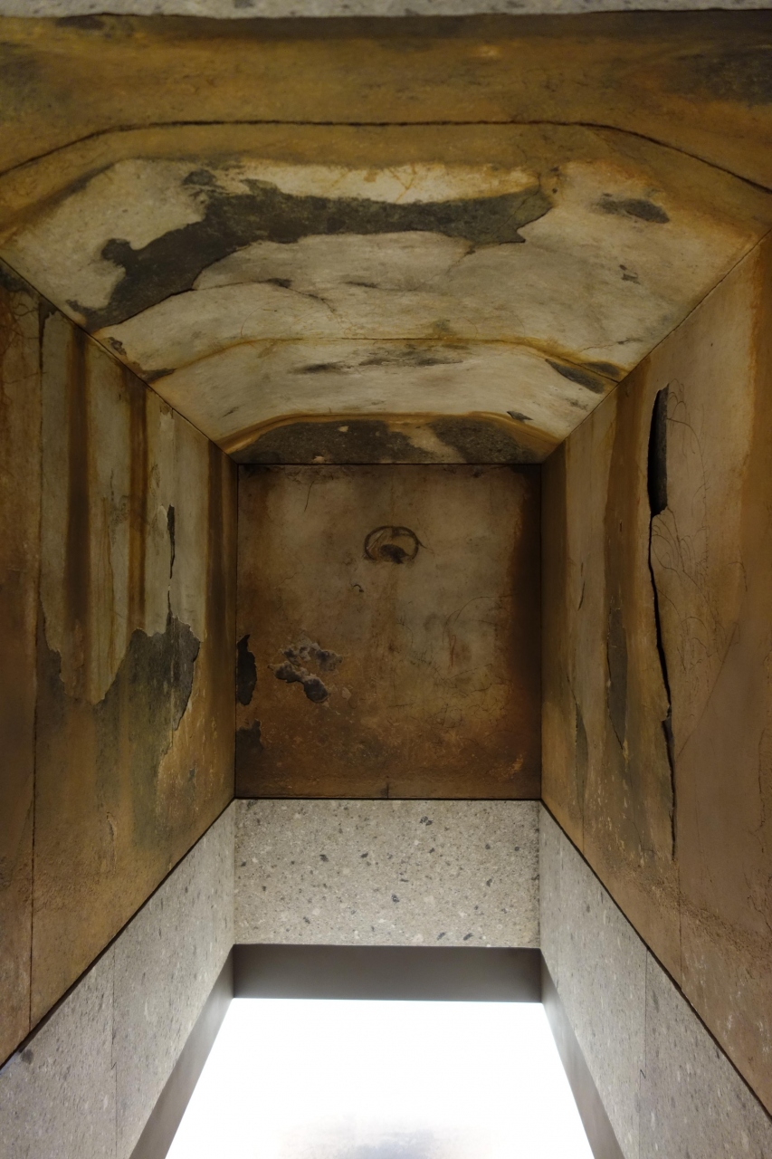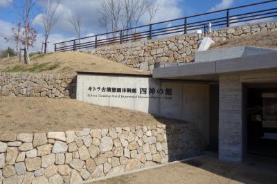 外観のみ見学可能なキトラ古墳そばに出来たばかりの、キトラ古墳壁画管理施設です。四神の壁画は、期間限定で1枚ずつ公開されています。