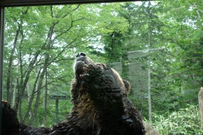 目の前でガラス越しに見る事が出来るヒグマの水浴びも、