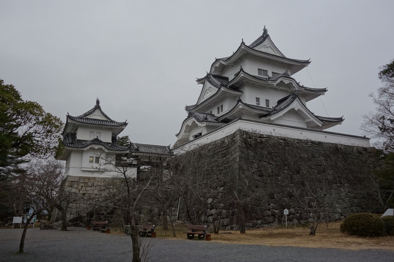 現在3層3階の天守が立っていますが、衆議院議員であった川崎克が、私財を投じて昭和初期に復興した模擬天守です。