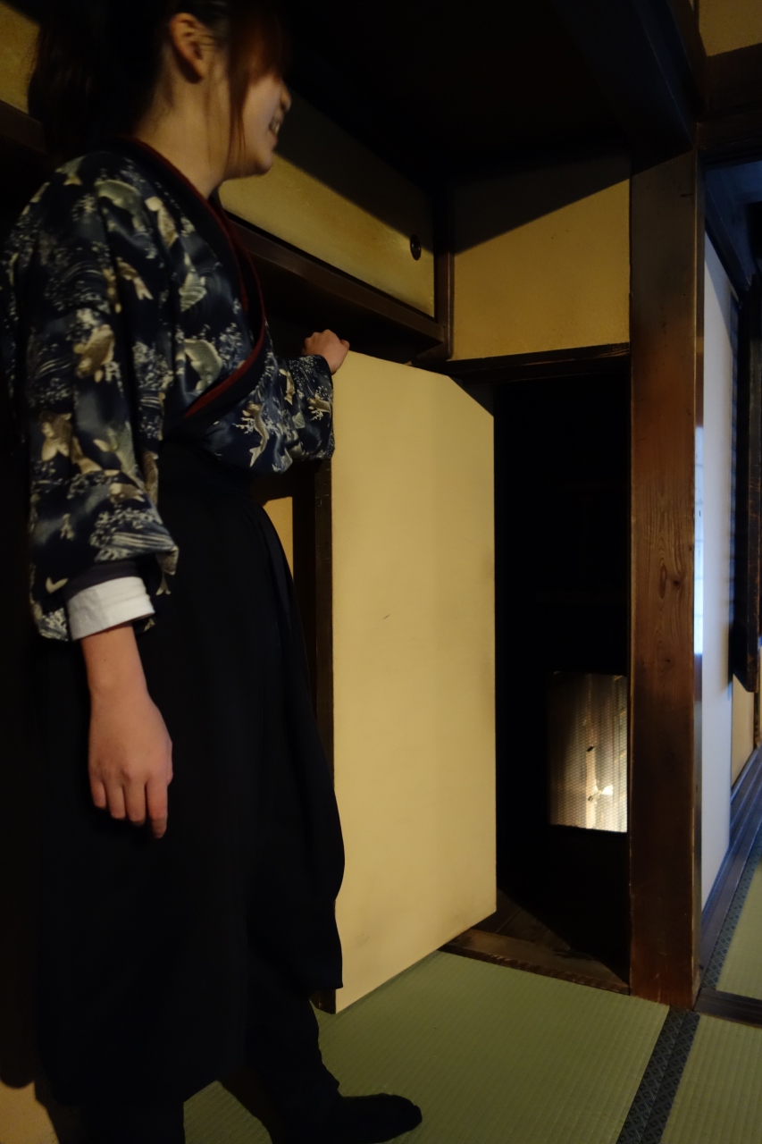忍者屋敷のカラクリを忍者の方が、楽しく解説してくれ、
