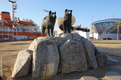 係留場所前には広場が設けられており、南極物語の主人公となった