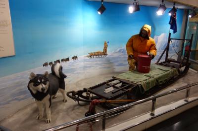タロ・ジロ兄弟の銅像や雪上車などが展示されています。