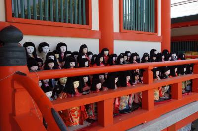 境内には日本人形を始め、熊や狸、招き猫、福助から、怪しいお面まで、ジャンルを問わない人形が所狭しと並んでいます。