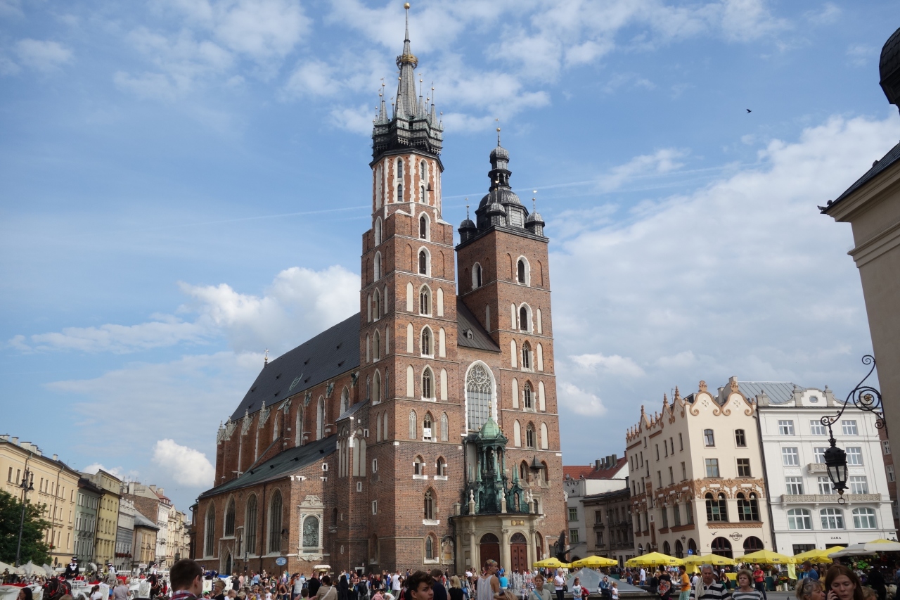第二次世界大戦でポーランドの各都市は、ほとんど壊滅的な状態になってしまいましたが、このクラクフは市街の70%が破壊されずに残ったそうです。