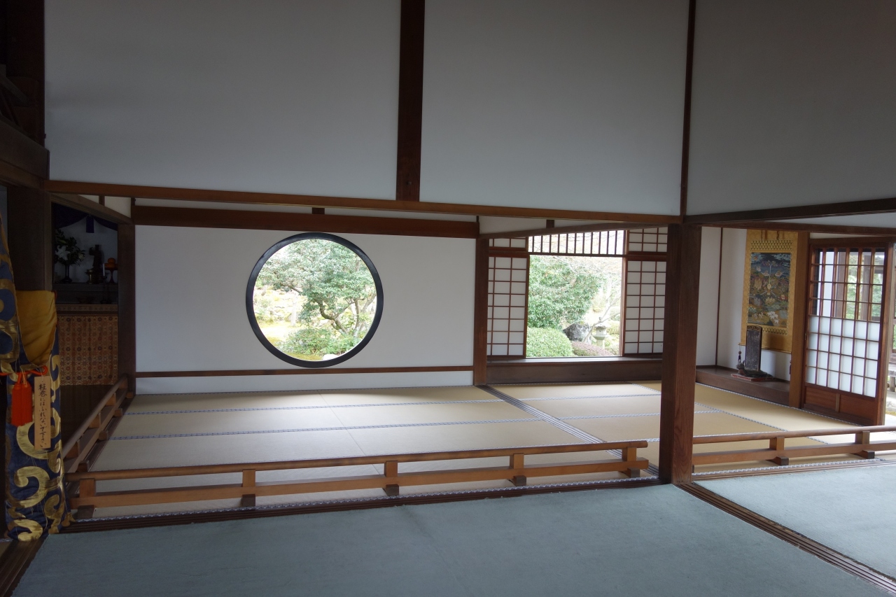 丸い悟りの窓と四角い迷いの窓の前も自分のペースで鑑賞できました。