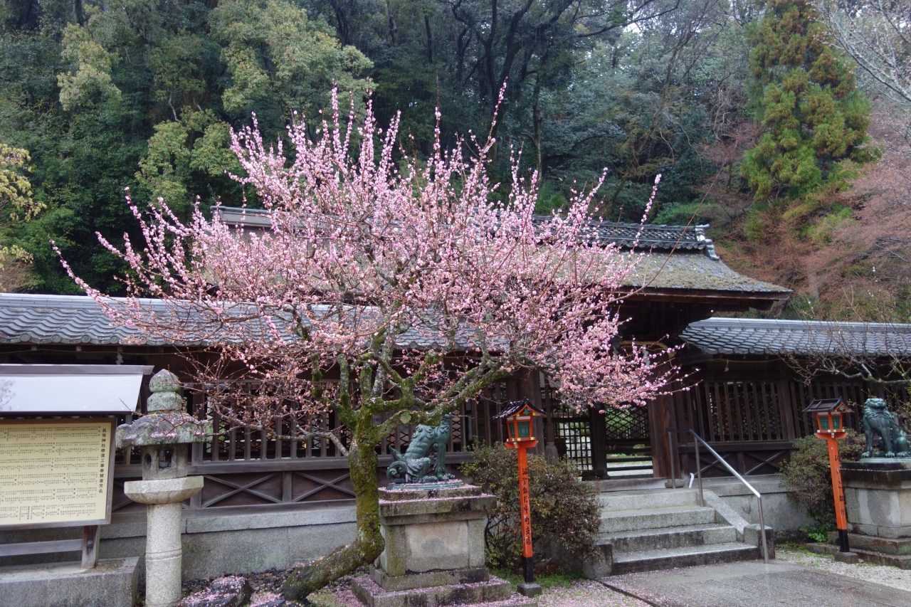 神門前の魁桜と呼ばれる枝垂れ桜が有名です。