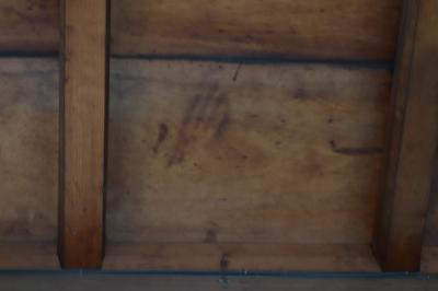 本堂廊下の天井板には、伏見城から移築された血の跡が残った床板が