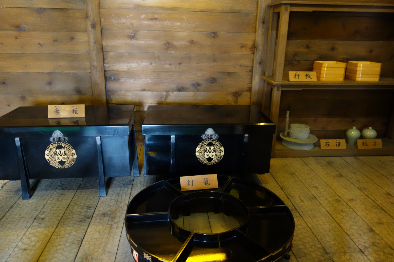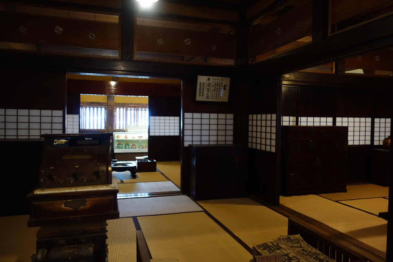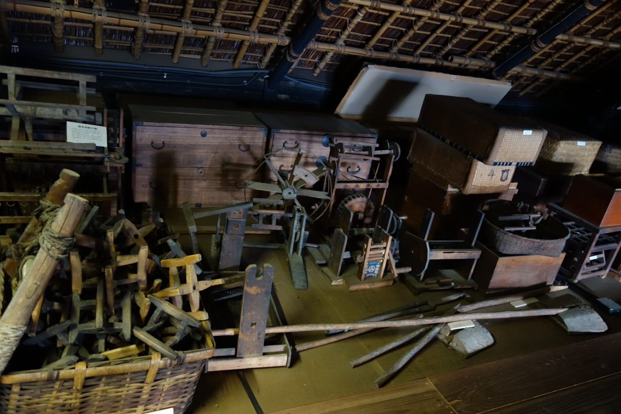 1階は畳敷きの座敷や土間に繋がる板の間があり、2階以上は板の間が拡がり、当時使用されていた農具や家財道具などが展示されています。