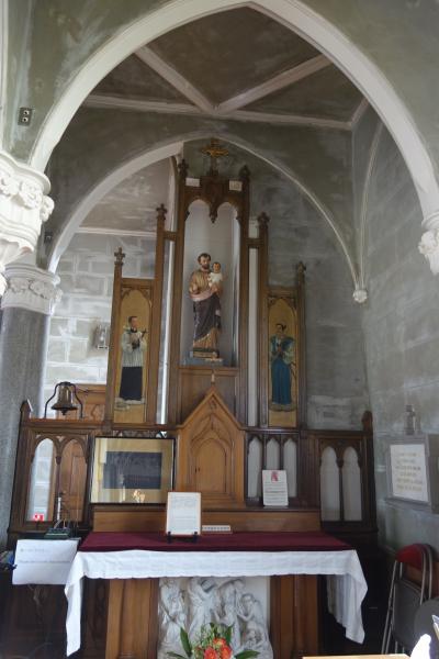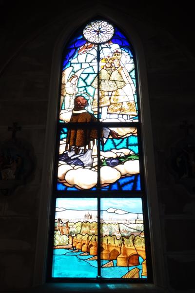 明るい教会です。教会内の右前方に美しいステンドグラスで