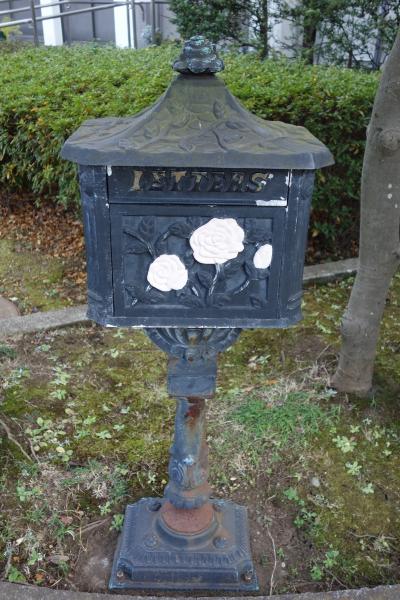 洋館前には、バラを楽しむ事が出来る庭園もあり、ポストにもバラが