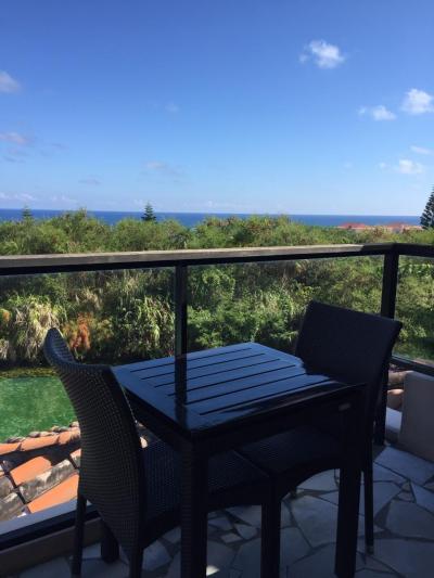 バルコニー。朝食をルームサービスにしようかと思いましたが、ビュッフェが...