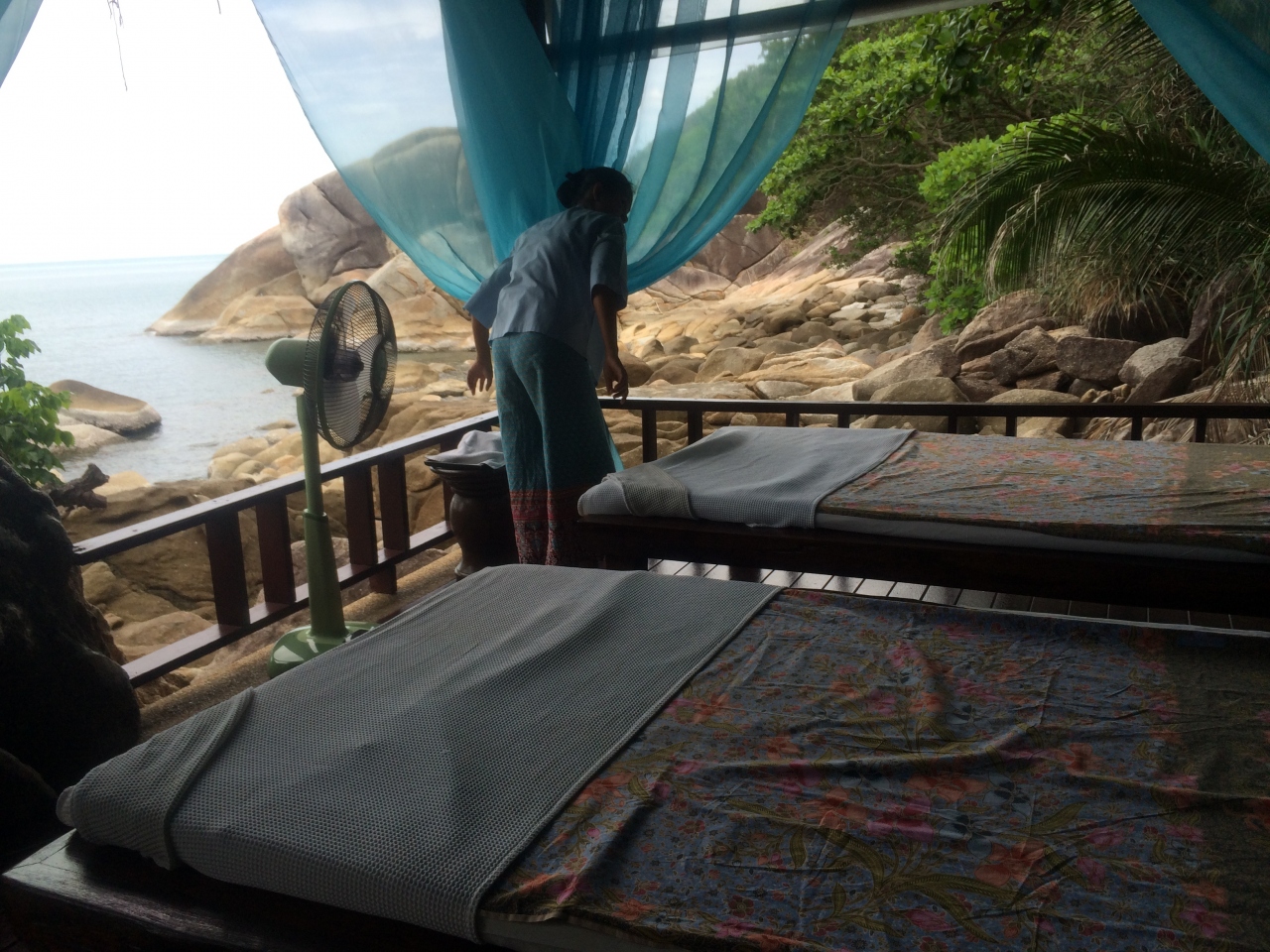 3時間のコースを予約していたのに、時間を勘違いして2時間で切り上げられてしまいました。理由を聞いても、「早く空港に行かなくては」というばかり(フライトまでの時間はたっぷあったのに、時間の計算を間違えてられたようです)。英語は通じるのですが、こちらの言い分をまったく聞こうとしないので閉口しました。結局、予約した現地の日本人がやっている代理店に電話をして間に入ってもらい、1時間分のお金を返してもらいましたが、結論が出るまで30分ほど、布一枚でレセプションで待たされ、まわりのお客さんからはじろじろ見られるし、とても不愉快でした。