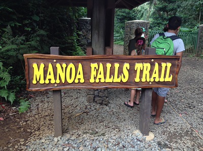 マノアの滝のトレッキングコースの駐車場手前にあります。