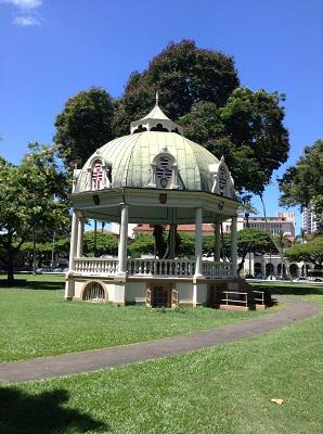 金曜日のお昼にはお庭でロイアルハワイアンバンドの演奏が聞けます。