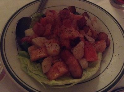 ウルフギャングサラダはトマトサラダのようでしたが、厚切りベーコンが美味です。