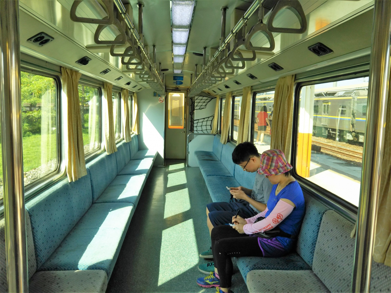 7月に南迴線普快車に乗車したところ客車が少し新しいものになっていました。1970年代のインド製で自動の乗降扉が車両中央にあるタイプ。つり革があり座席配置も少し違います。冷房がなく扇風機がまわっているのは同じです。今後日本製の旧客車がリバイバルするのかは不明です。- 旅行時期