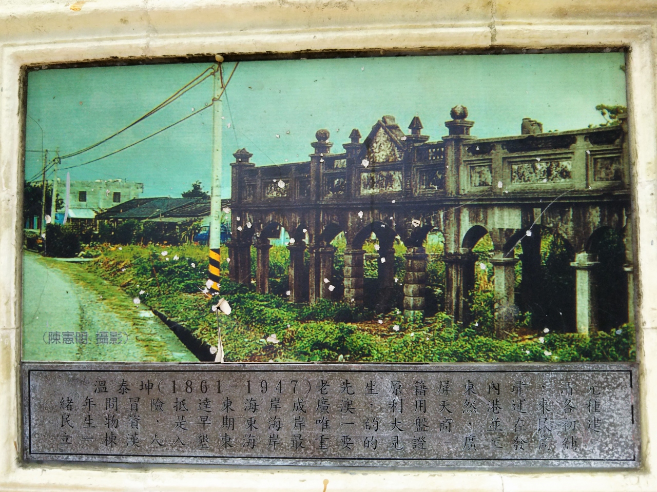 1916年に漢人商人によって建設された商店の遺跡です。1930年代までは遺跡のある小港が台湾東部の政治経済の中心でした。成功の港ができてから小港は衰退し、この商店も廃墟となっていました。保存状態はかなり悪く、かつての栄光を思い描くのは難しいですが台東の歴史を辿る上で貴重な場所だと思います。