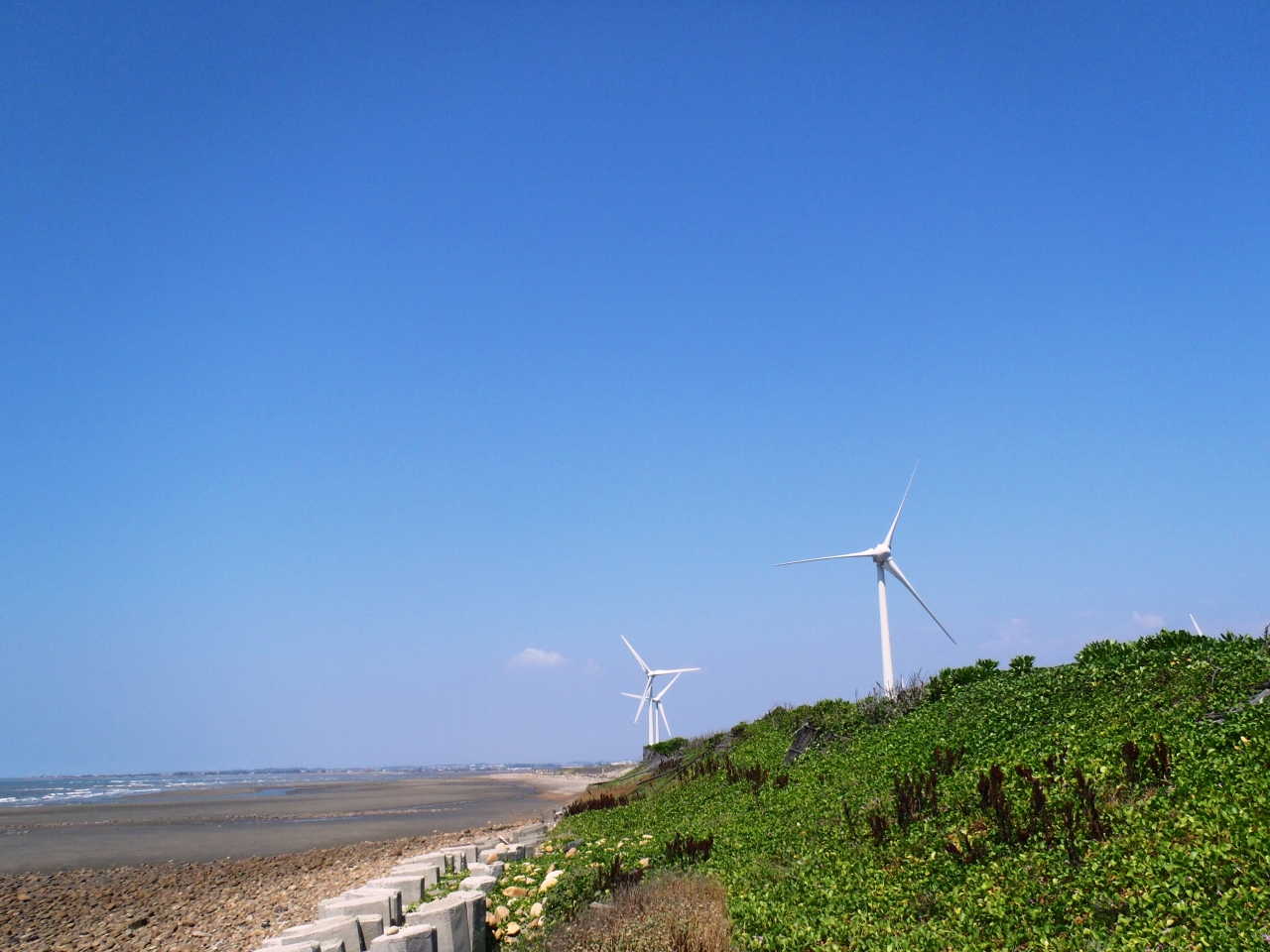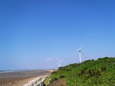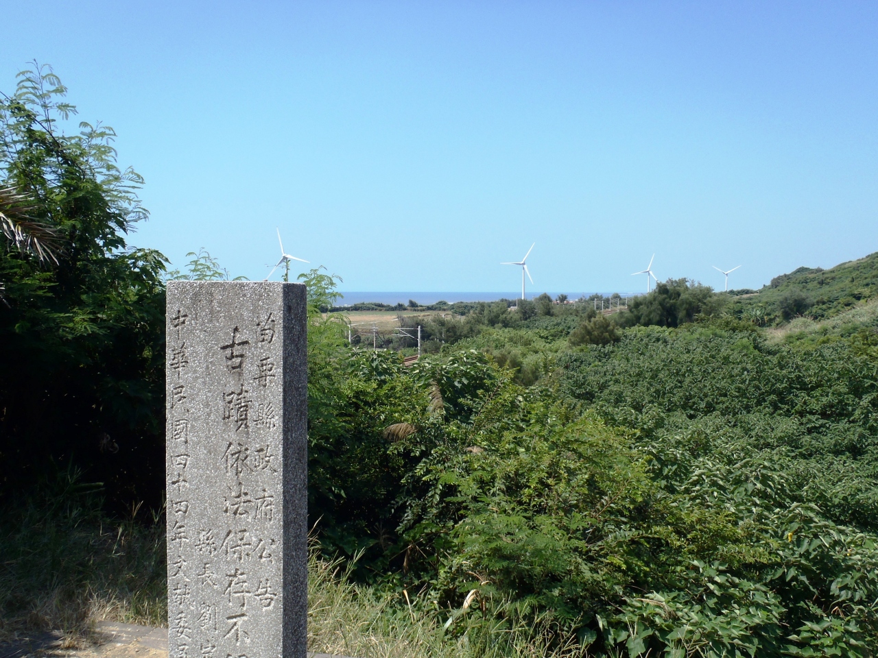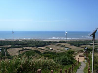 もとは台湾海峡を睨む軍の基地。トーチカ跡が残っています。現在は夕陽がきれいな展望台。眼下には周辺に林立する風力発電の風車、名産のスイカ畑、美しい海岸線、台湾鉄道の海線線路と、景色を眺めるだけでも十分な場所なのですが、丘の麓に鉄道の廃トンネルがあり、見学できるように整備されています。(白沙屯舊隧道群)それに、この山自体が化石を含んだ地層で、線路沿いと中腹に貝殻化石が見られるポイントまであるのです。浜辺まで下りていくこともできます。