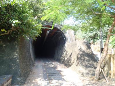 大正時代に作られた鉄道のトンネルが、電化にともない廃止となり今は文化財として保存されています。一つのトンネル内に上下双方の線路が敷かれていたというめずらしいトンネル。そして、第二次世界大戦中の機銃掃射の弾痕が壁面に残されています。