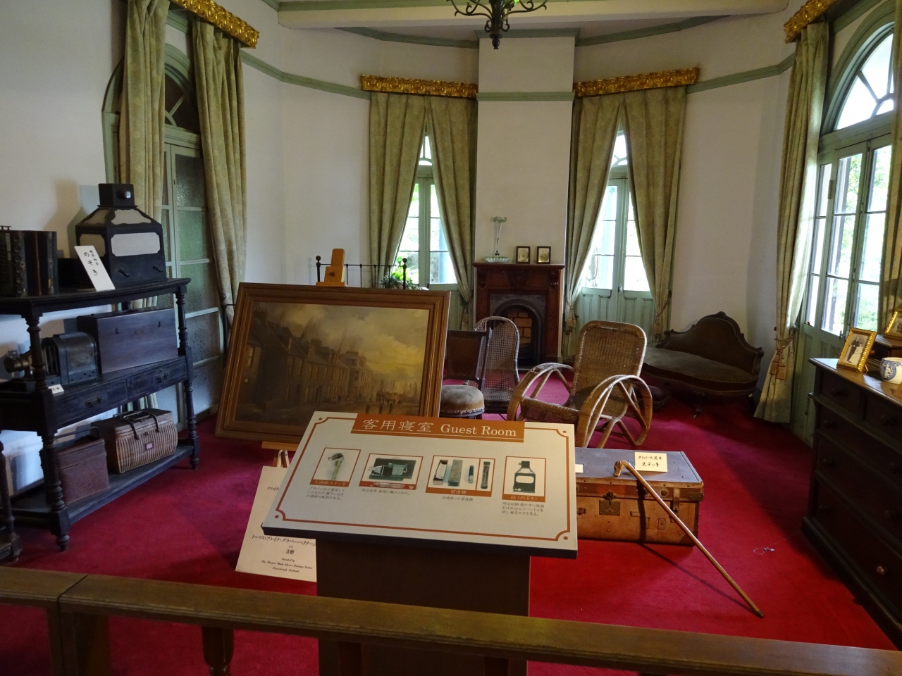 2階、3階は展示室になっているんですが、ただ展示してあるだけじゃなく、さまざまな工夫が凝らしてあって、なかなか面白い(写真は、顔抜きじゃなく、昔の服や風景を選びながらできる記念写真~スマホにも保存できます。)。- 旅行時期