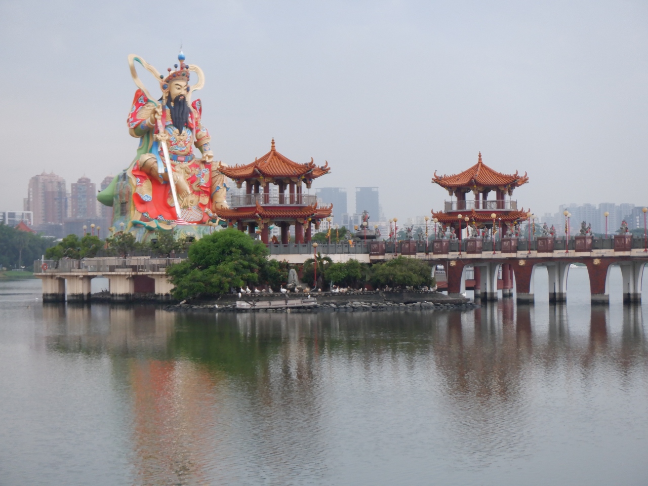 蓮池譚には様々な像がありますが、その中で一番目立っているように思います。湖に向かっている長い通路(橋)を通って行った向こうに大きな北極帝の像があり、中にも入ることができます。