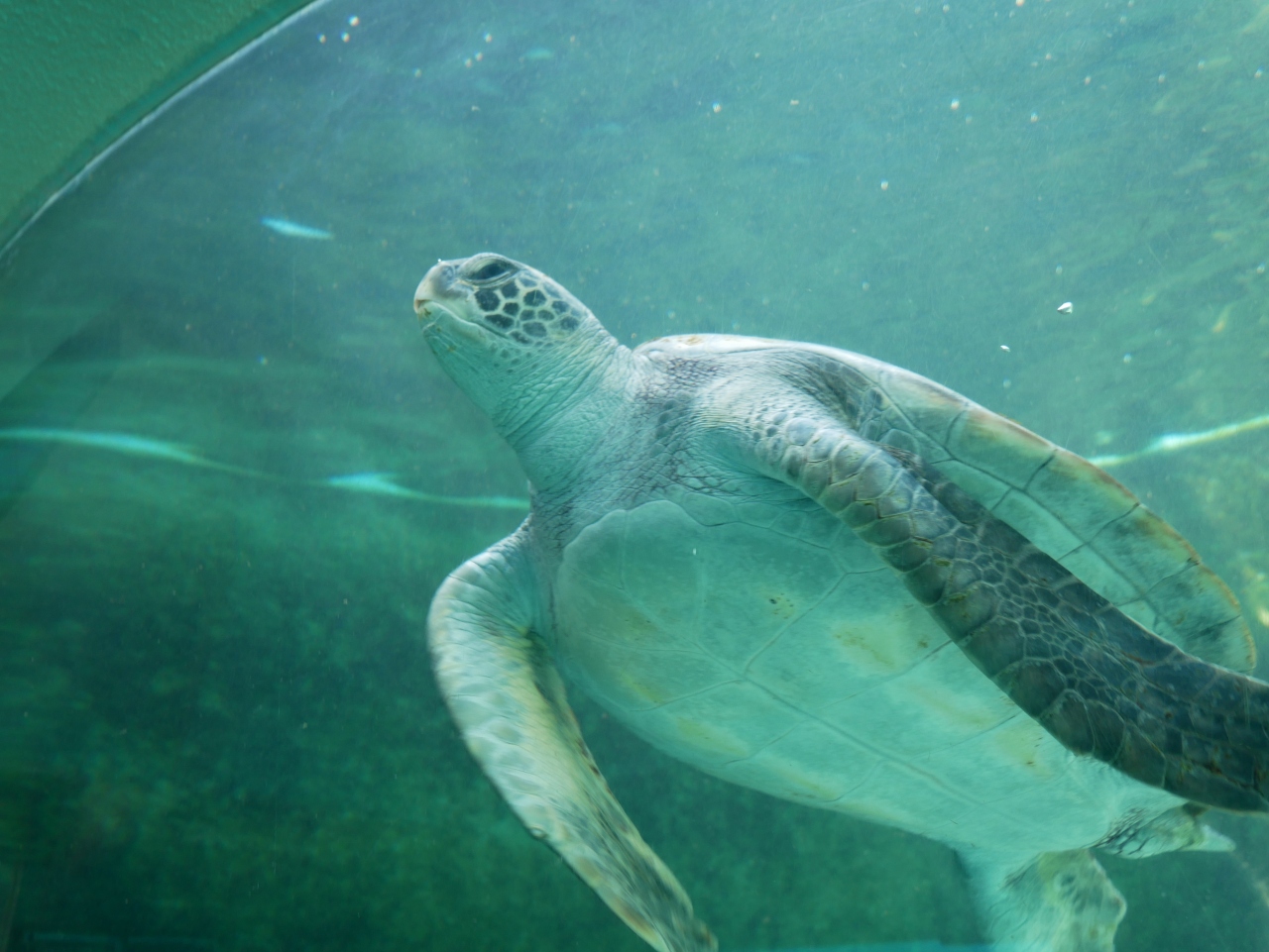 これも、美ら海水族館のそばにある施設(マナティ館の隣)で、水族館を見た後、流れでマナティ、ウミガメと見てきました。結構な数のウミガメを水槽的に建物内から見ることもできますし、外に出て、屋外から(上から)見ることもできます。