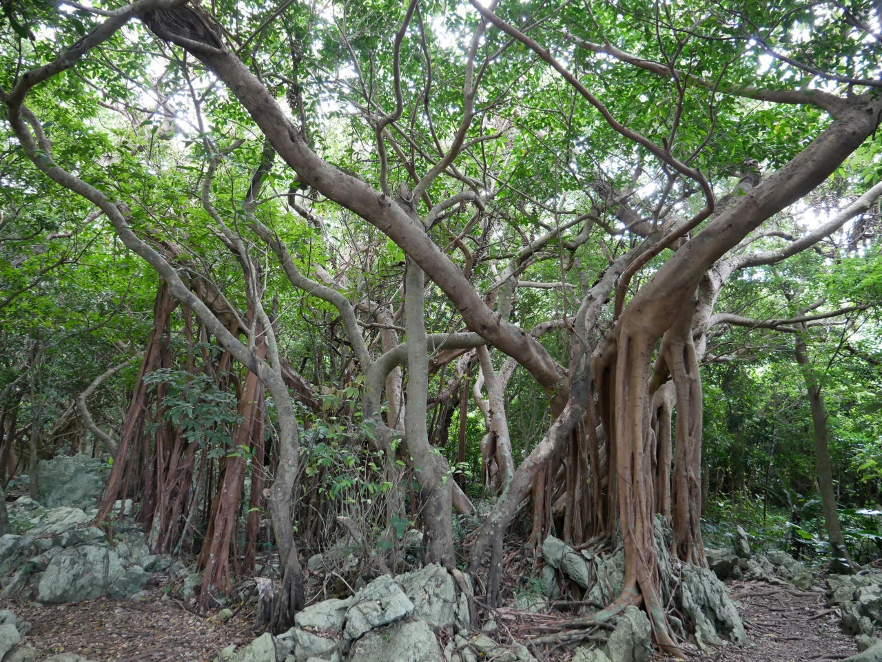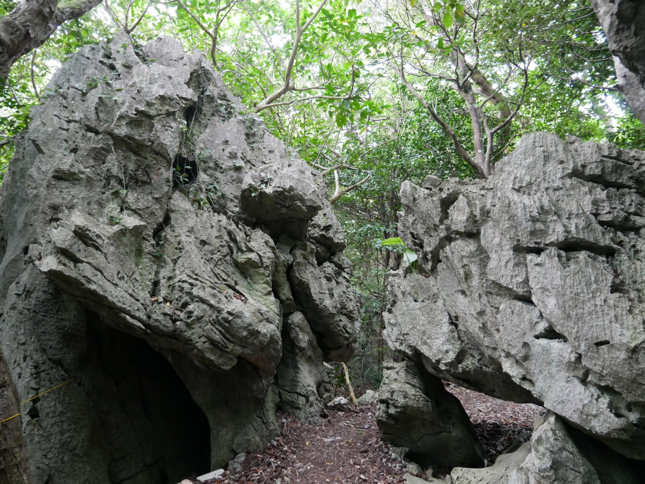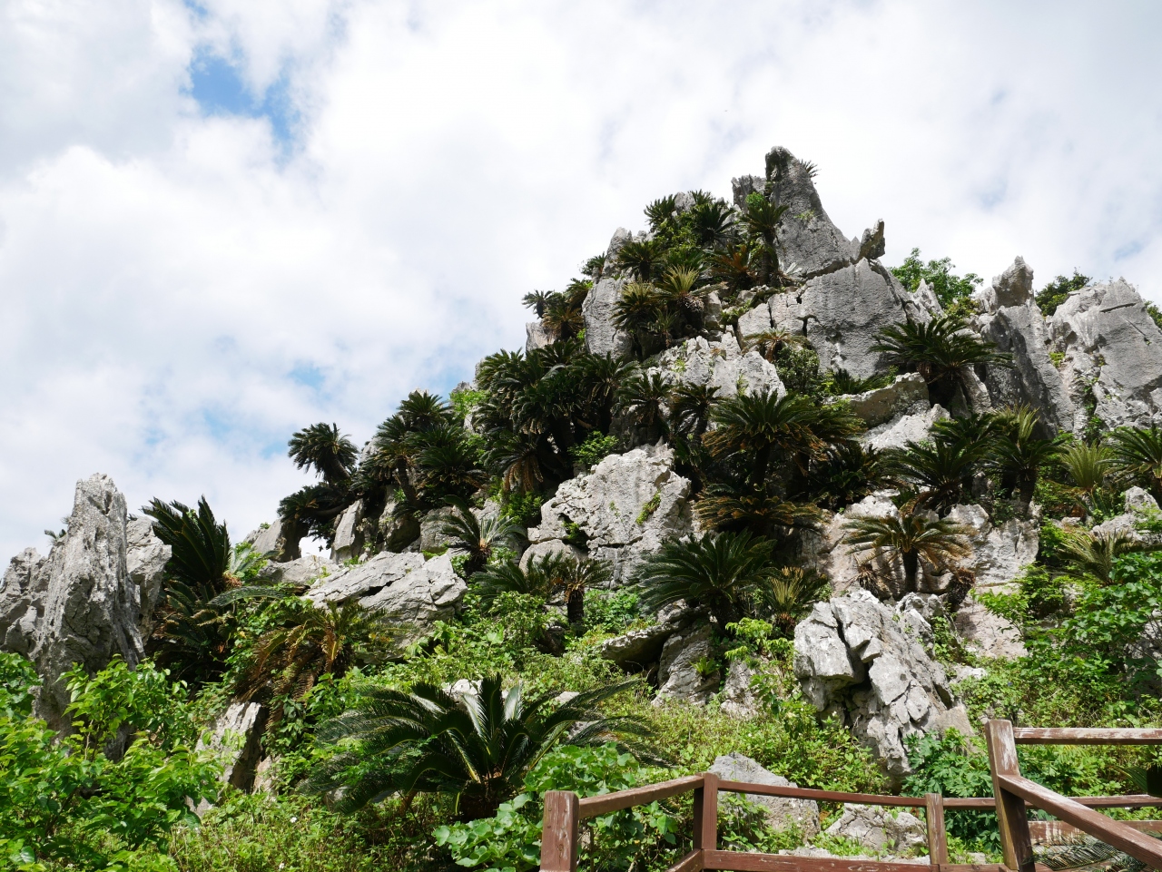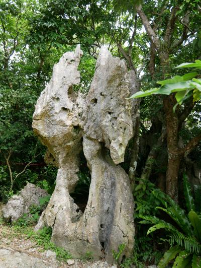 駐車場でチケットを購入し(私は美ら海エンジョイパスがあったので無料)、バスで精気小屋まで連れて行ってもらいます。そこから4つのハイキングコースを順番に歩くことになるのですが、時間にして、2時間くらい(ゆっくり歩きました)、最初は、森の中で変わった岩を見ながら進み、次は、岩山に登る感じのハイキング、岩と、そこから生えてる気のコントラストが絶妙。最後は、マングローブとソテツのジャングル?を下っていく感じのコースです。