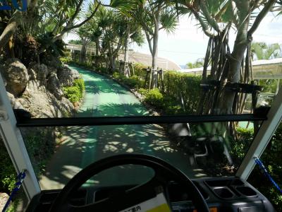 まず、駐車場から、自動運転の電動カートで建物入口まで運んでくれます。