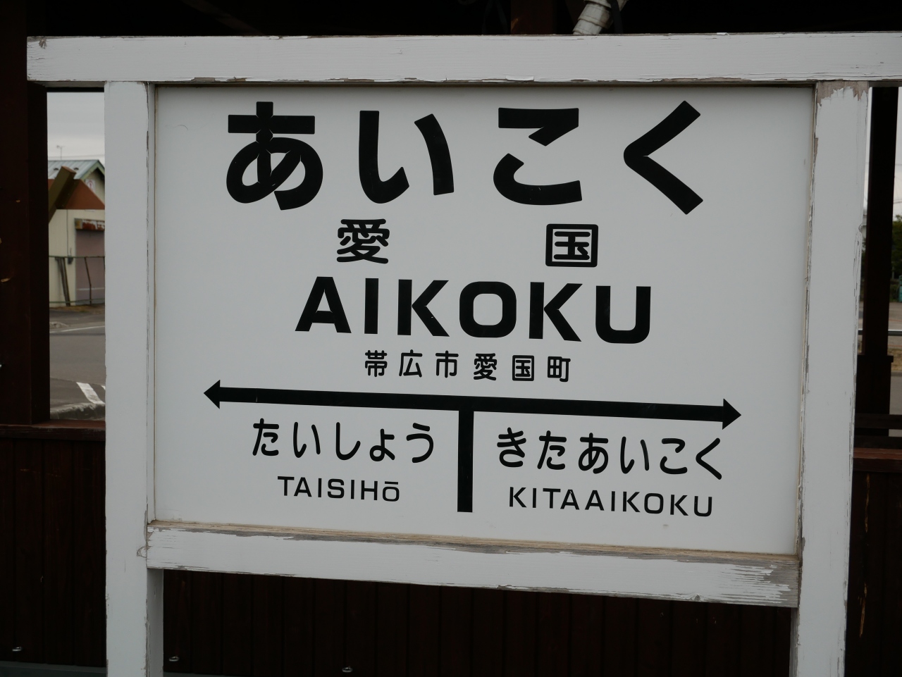 だいぶ昔に「愛の国から幸福へ」のキャッチフレーズで人気があった旧国鉄広尾線の愛国駅です。