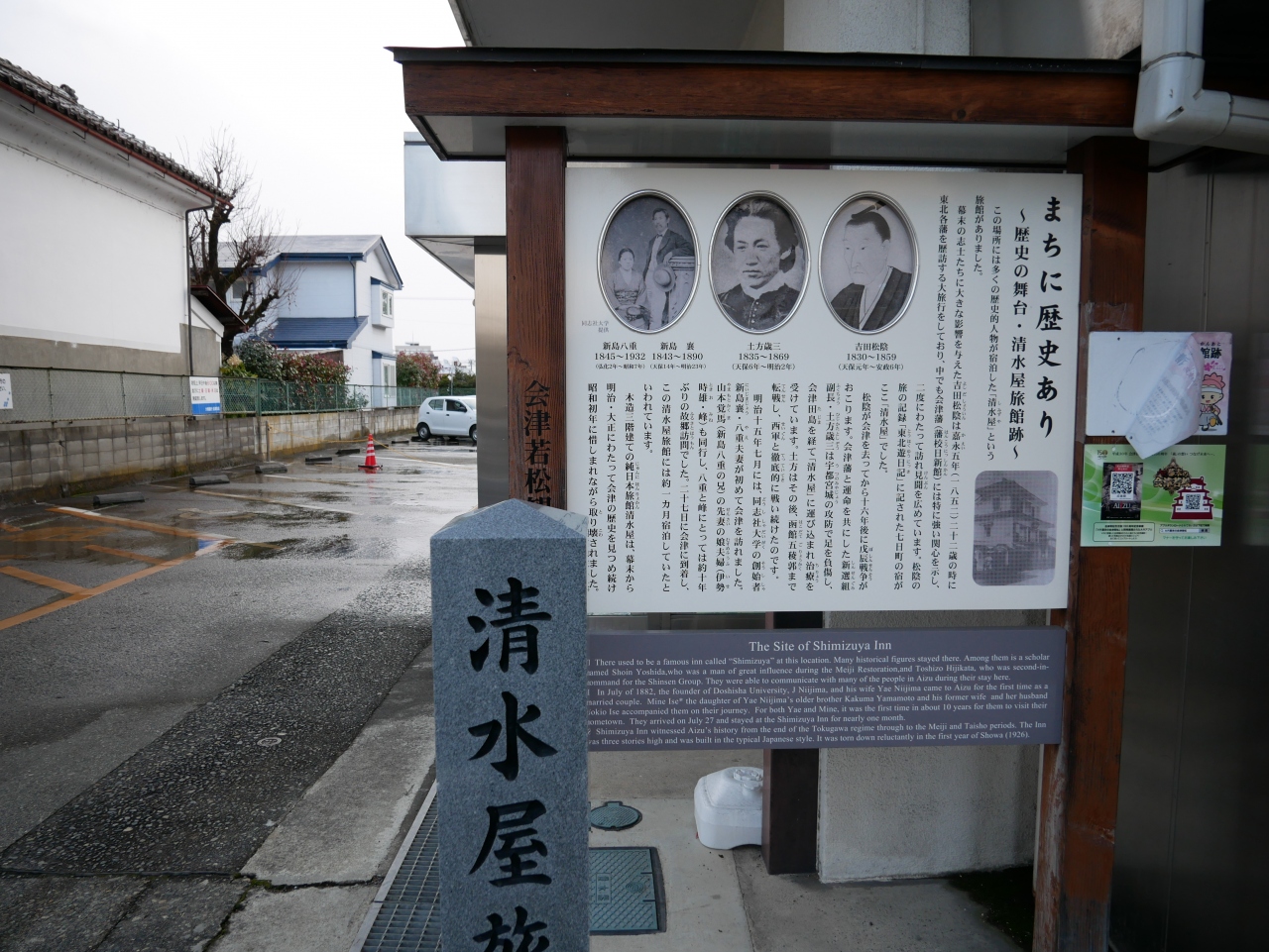 七日町通りを散策していると、何やら、結構目立つ説明板と「清水屋旅館」と彫られた石柱が、ここは何?ていう感じで見てみると、吉田松陰はじめ有名な人が大勢宿泊した旅館の跡だそうです。説明書きの看板のみで他には何もありません。