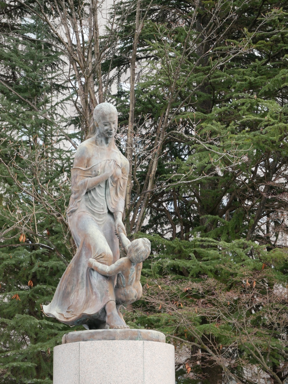 会津若松駅の、まん前にありますので、列車を降りて駅を出たらすぐ目につきます(等身大くらいなのか、あまり大きくはありませんが。)。