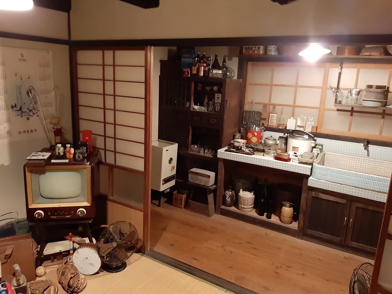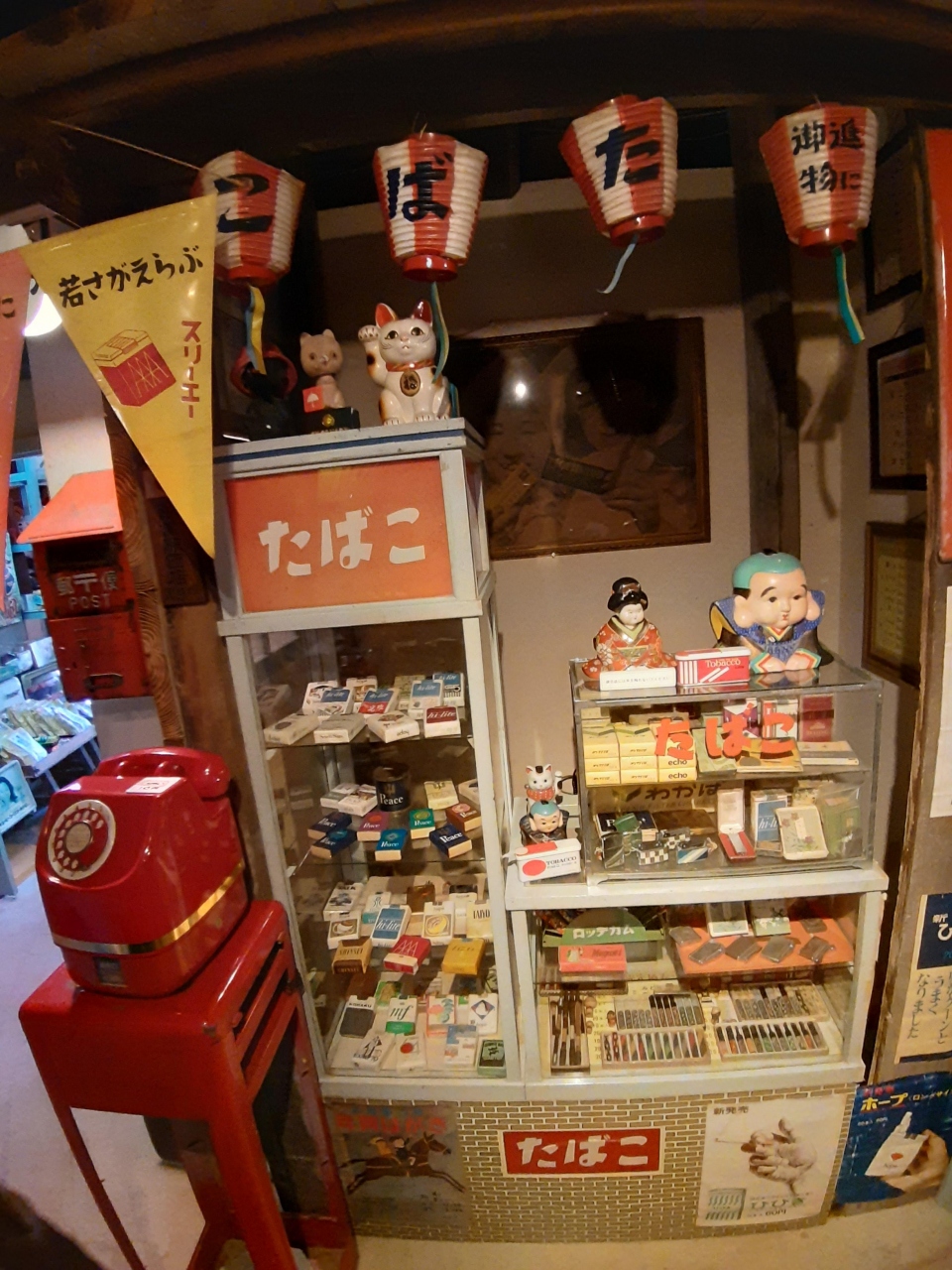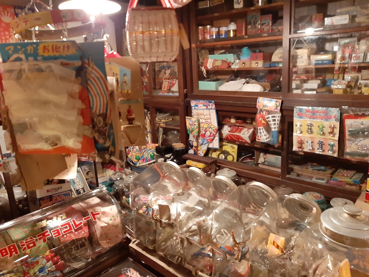 ガラナや瓶コーラ、それにおもちゃといった定番の昭和商品もありますし、お茶の間を再現して、当時の生活用品が飾ってあるスペース、駄菓子屋さんと、完全に3丁目の夕日の世界です。