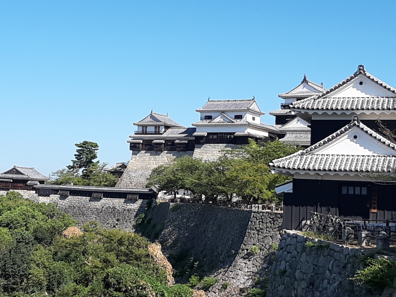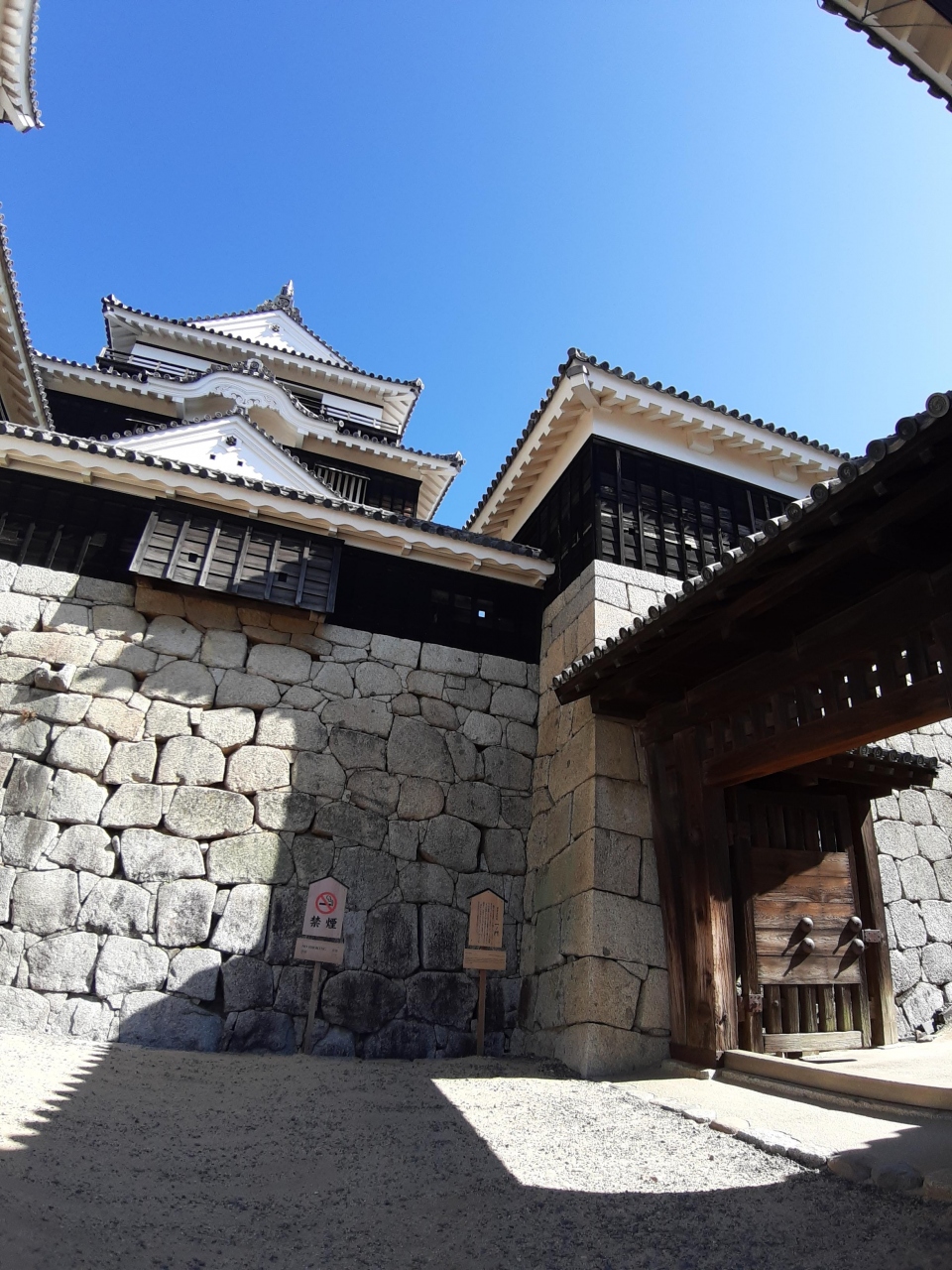 高い石垣の上にあるお城は、天守が連なっている立派な物、しかも日本に12しかない現存天守だそうで、歴史もあります。お城によくある各種の仕掛けもすごいですし、天守からの眺めも、なかなかでした。