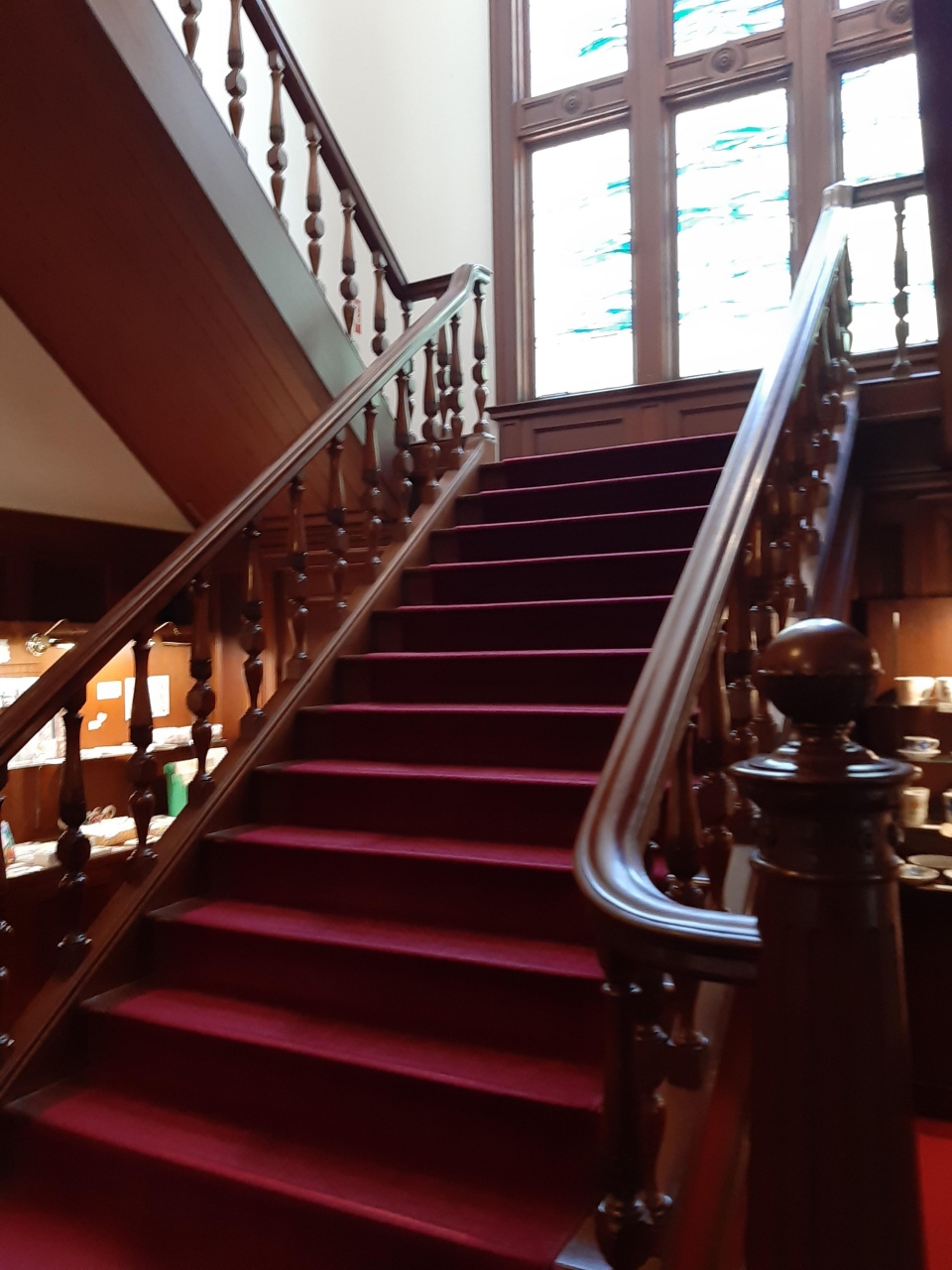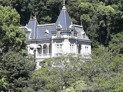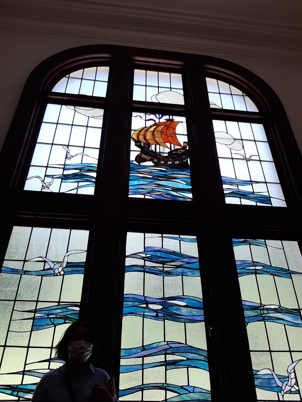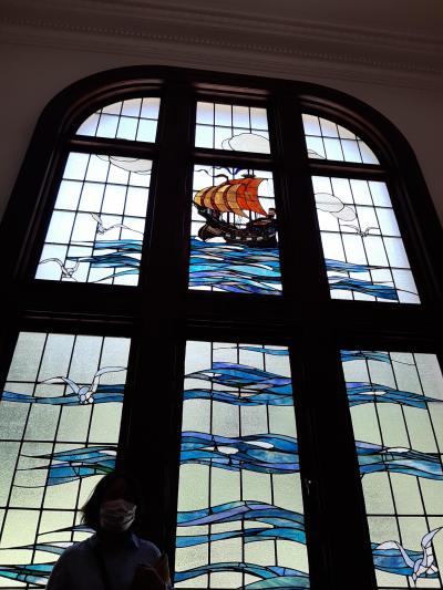 松山藩主の末裔、久松伯爵が建てたフランス風の別荘です。お金がかかっているだけあって、外観も内装も立派、特に階段のところにあるステンドグラスは目を引きます。