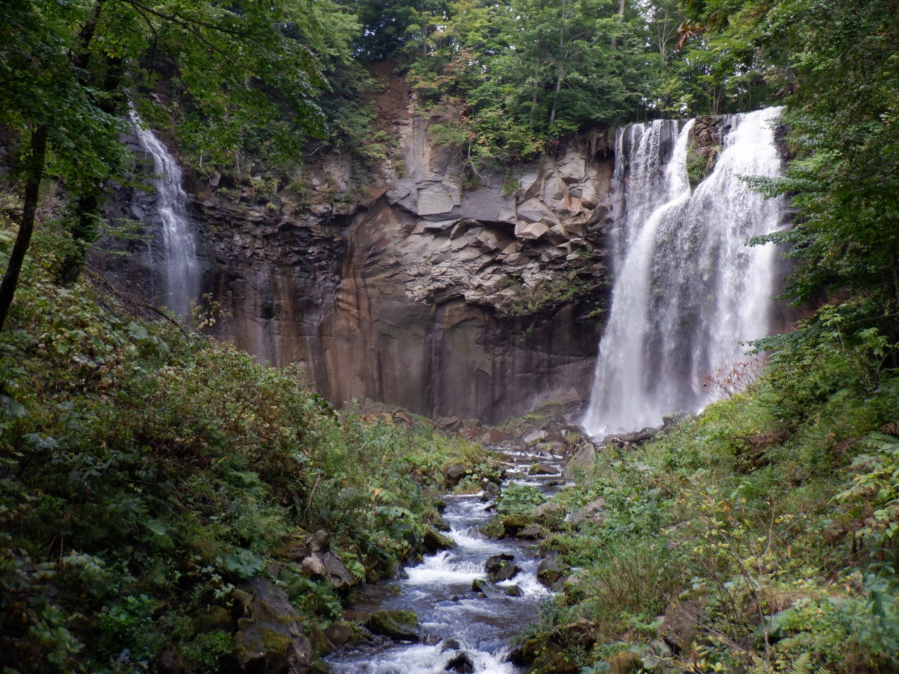 滝野すずらん公園にある滝です、駐車場(有料ですが、滝野すずらん公園の各所の駐車場に停められます。・・移動も可)に車を停めて、20~30分くらいの遊歩道というか散歩道を歩いた突き当りにあります(到着するまでには、広場があったり、釣り堀があったり、レストランがあったりします。)。