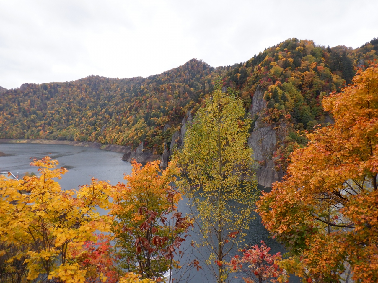 ダムの上も歩くことができ、あちこちから、紅葉を楽しめました。