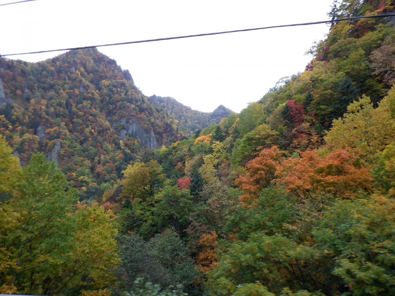 豊平峡温泉を越えてさらに山に進むと大きな駐車場があり、そこから電動バス(往復で640円)に乗り換えて行きます。(もちろん、ハイキング気分で徒歩でも可)