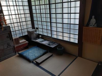 子規が暮らした家を復元したとのことですが、なんで、お寺の敷地内に?と思ったら、正岡家の菩提寺だそうです。普通の家を復元しただけですので大きなものではなく、再現してある書斎も、いわば普通の書斎です。