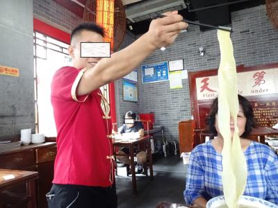 天下第一麺は長さが3.8mあるそうで、持ち上げるパフォーマンスもしてくれました。