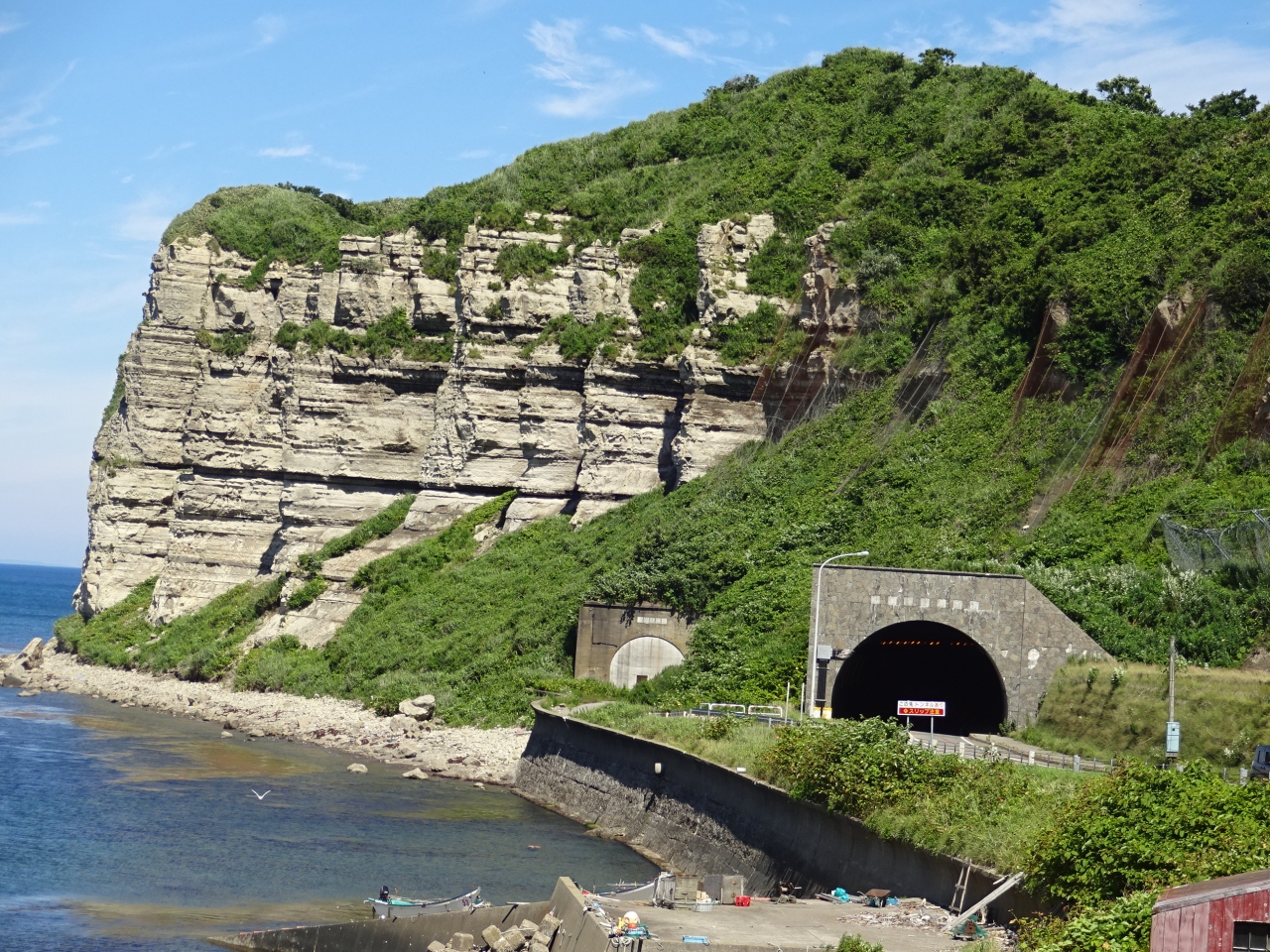 けっこう高い崖のようになった岬で、岩肌が白っぽいので、