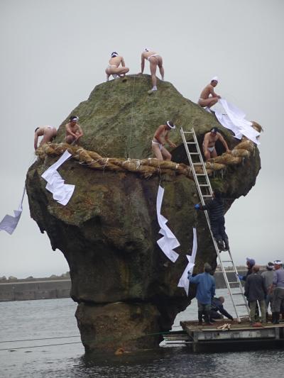 おそらく、瓶子岩にかかっているしめ縄を取り換えるのがメインのお祭りです。
