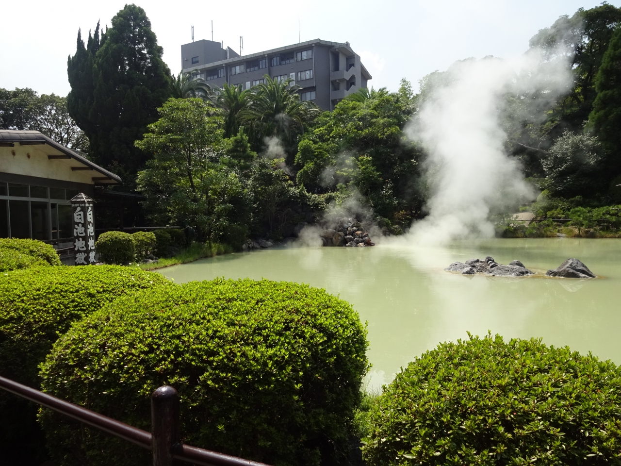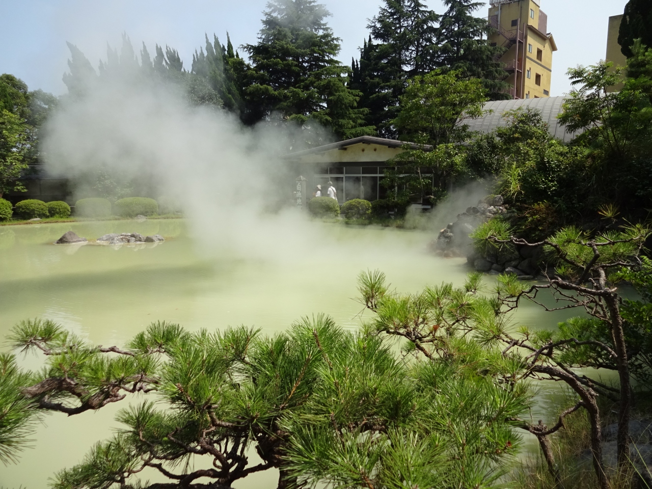 なんか、白いような薄青いようなお湯なので、地獄というより、これが大きな露天風呂なら気持ちいいだろうなあ・・っていう感じでした。