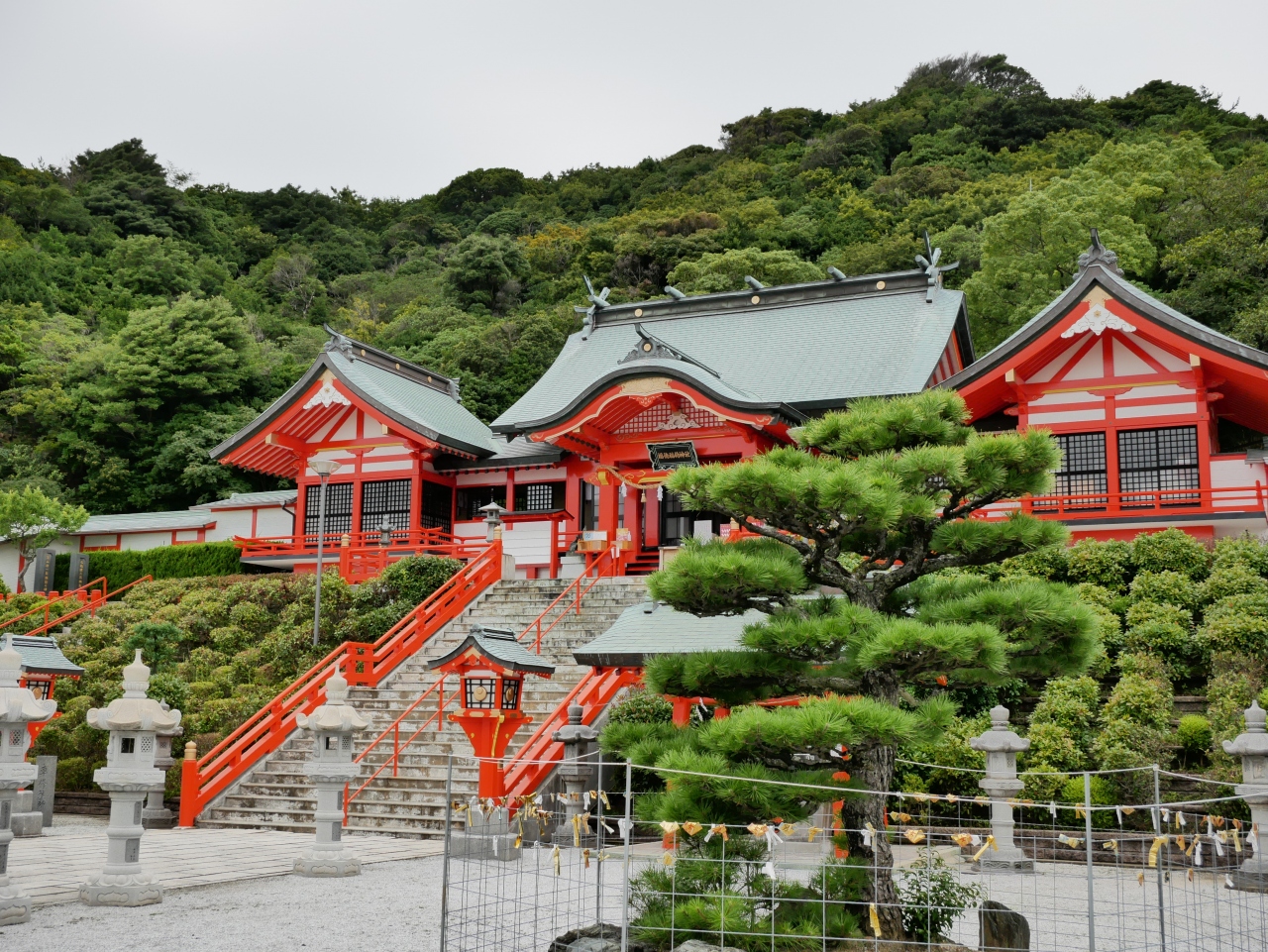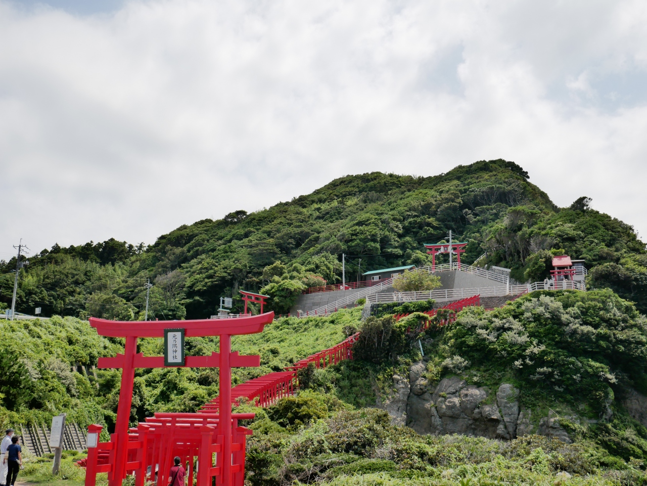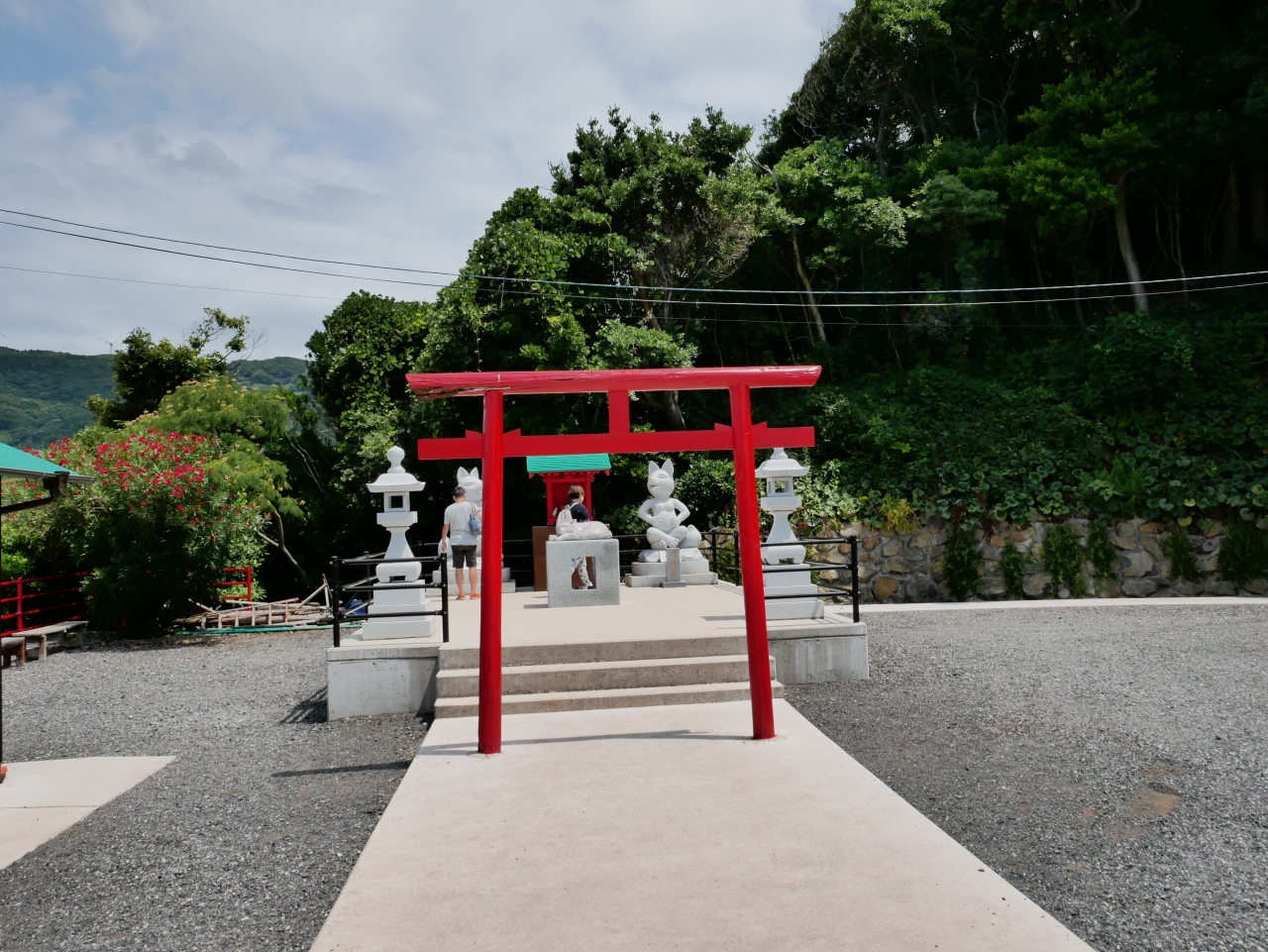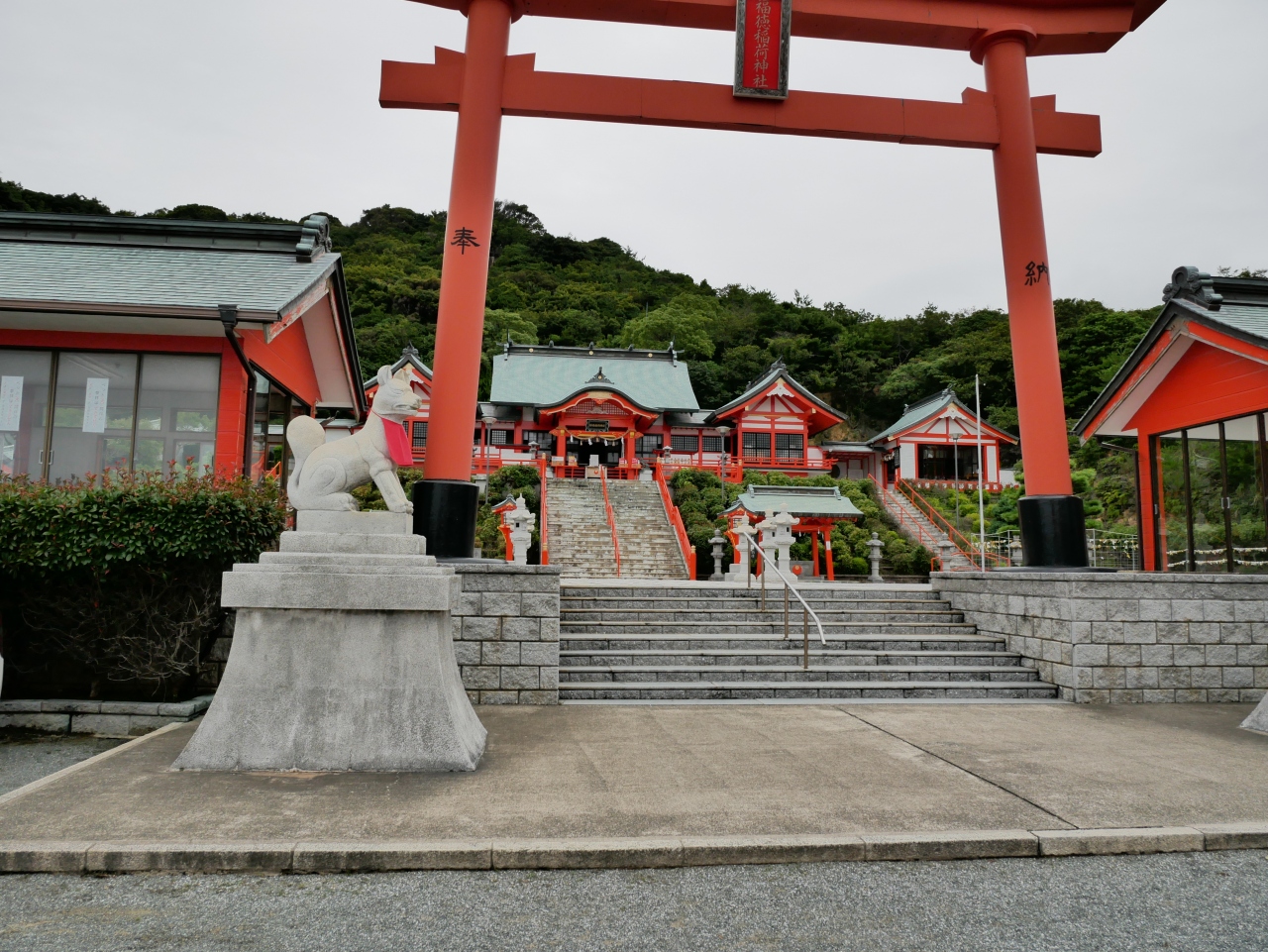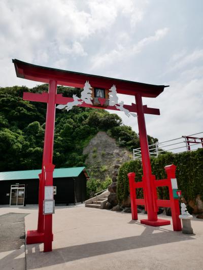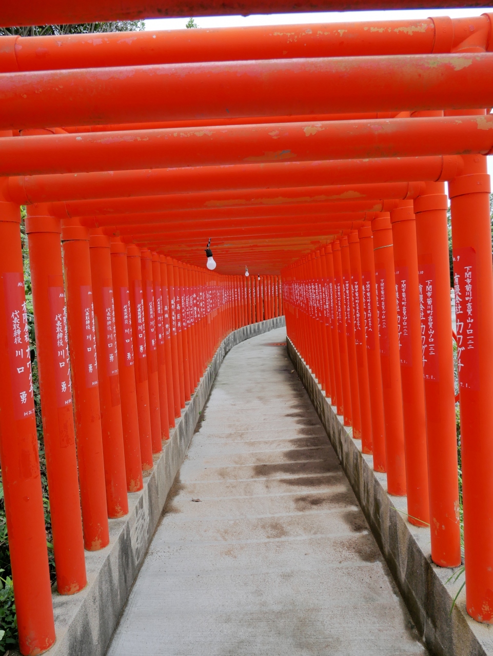 駐車場から鳥居を通って(この鳥居にあるお賽銭箱に入れるのが、世界一難しいそうですが・・確かに)、海まで続くきれいな朱色の鳥居をくぐっていくと、出口は、きれいな海のすぐそば、鳥居も、海も、美しいの一言です。