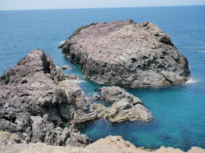 元乃隅神社の鳥居を通った先にある、岩場の海岸です。