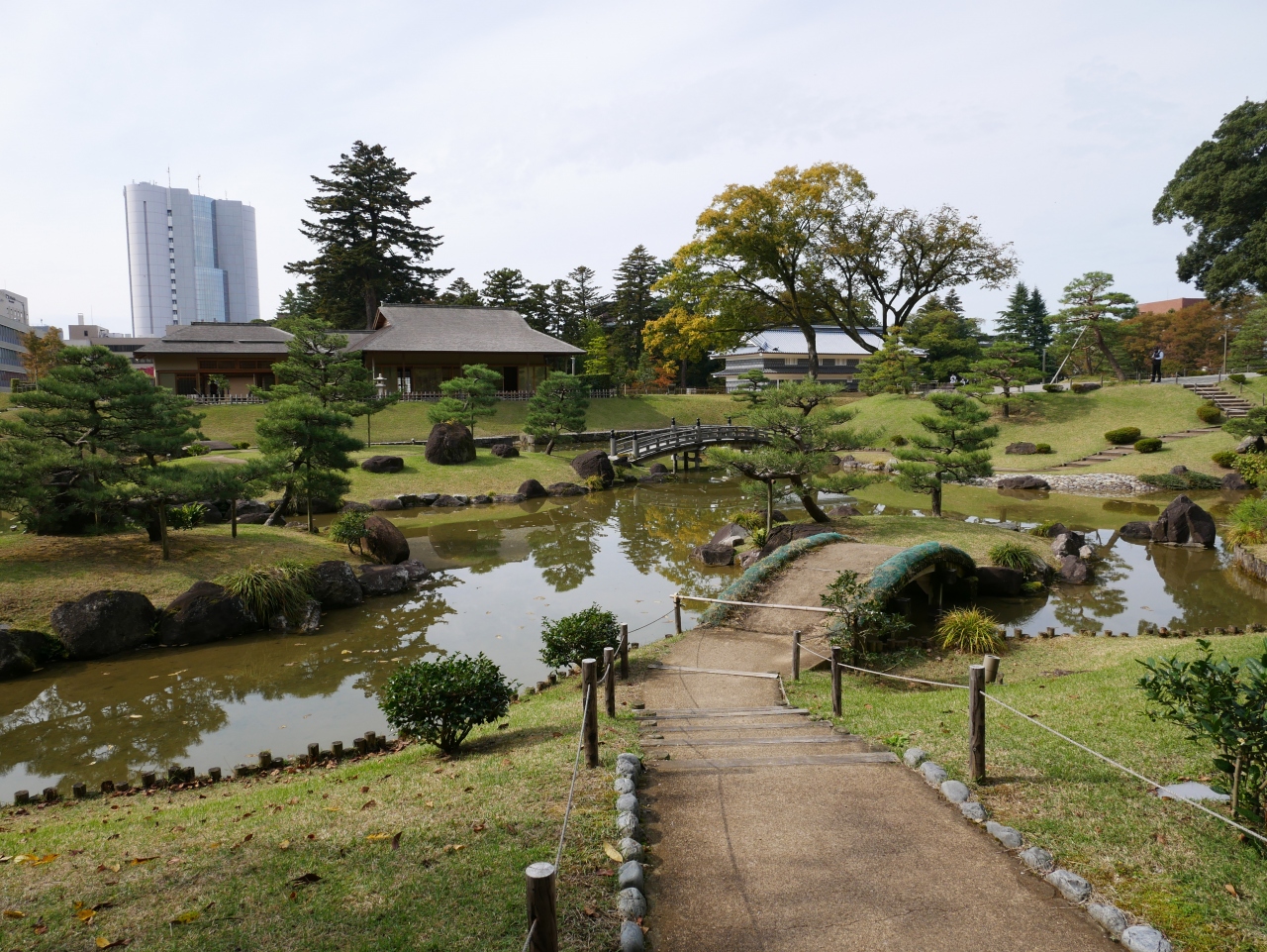 藩主のプライベート庭園だったとかで、広い池を中心に、美しく造られていました。